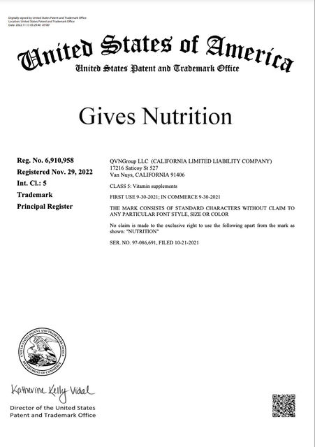 Electronic copy of official gold-stamped trademark certificate upon registration